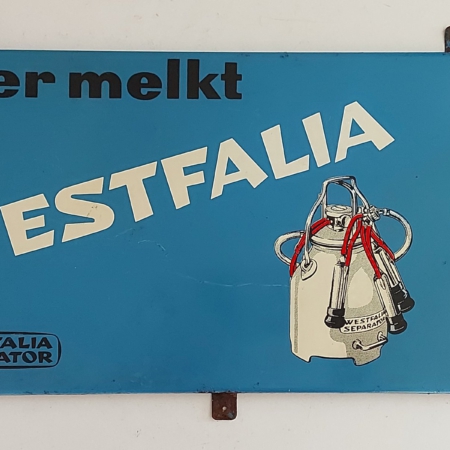 altes Emailschild mit Thermometer Hier melkt Westfalia