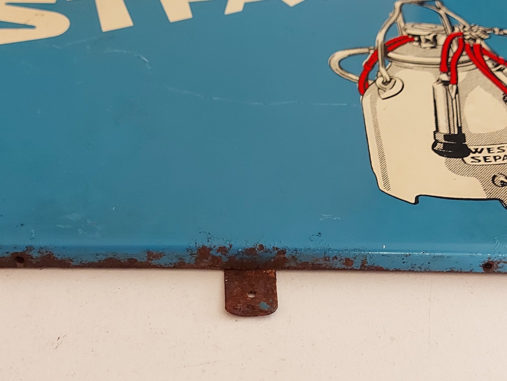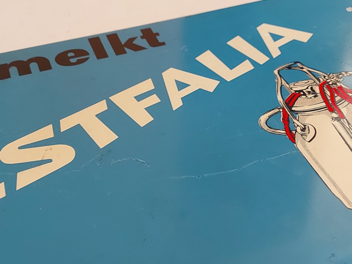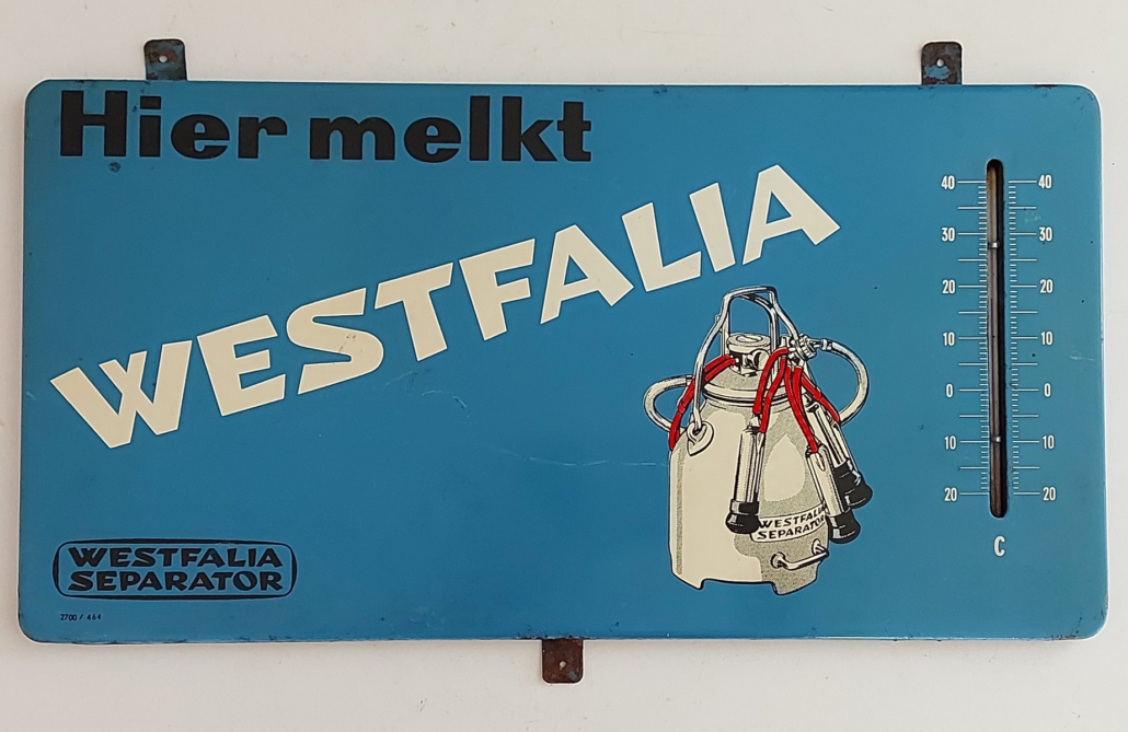 altes Emailschild mit Thermometer Hier melkt Westfalia