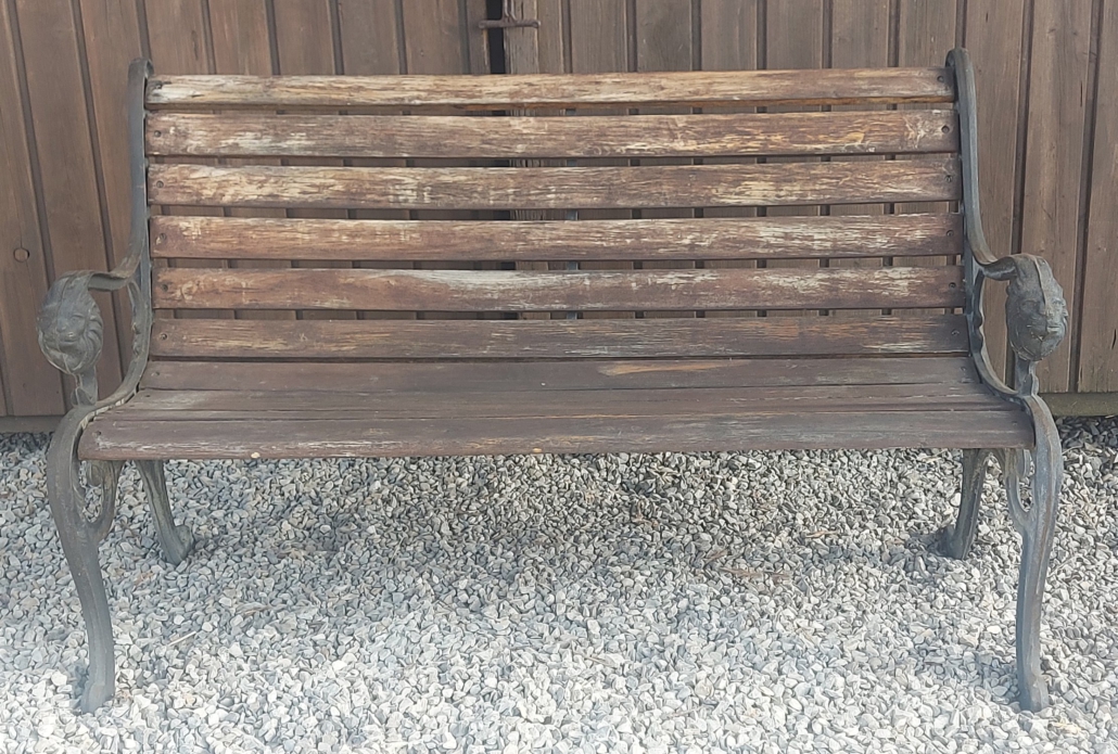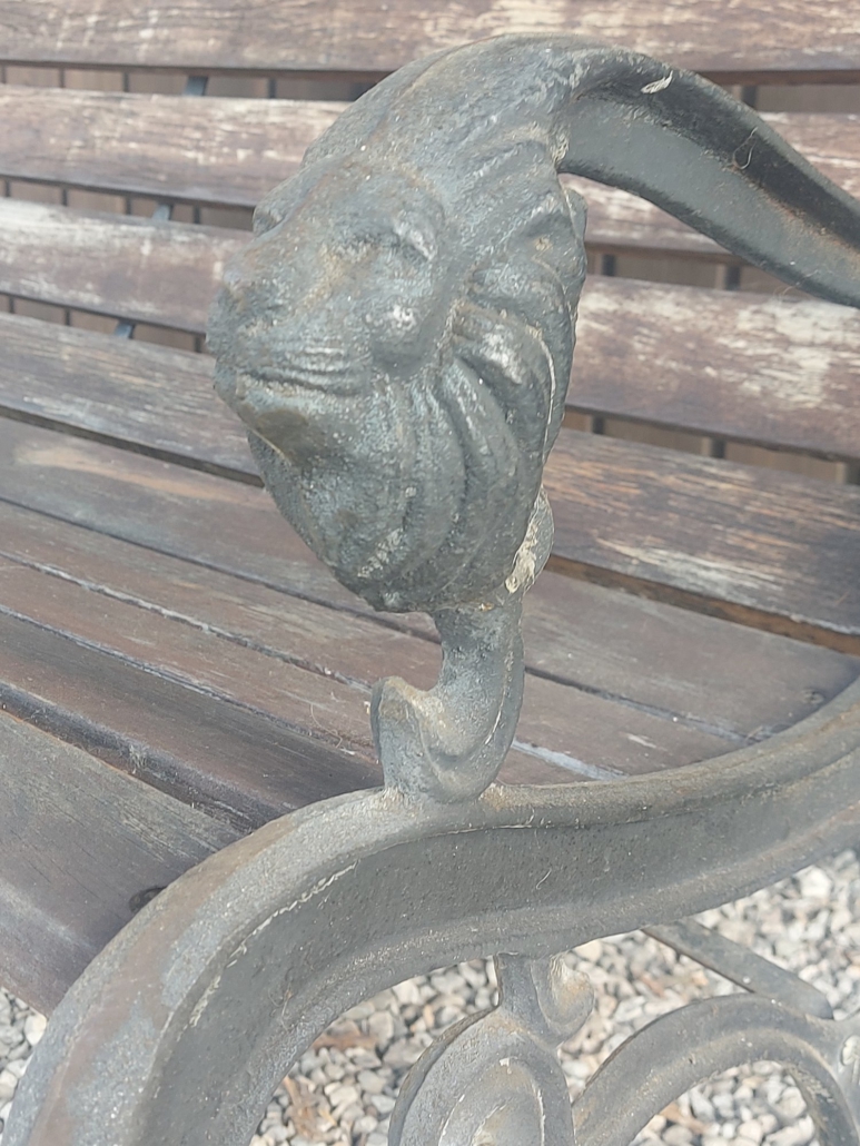 Suchbegriffe: Bank, Gartenbank, Parkbank, Terrassenbank, Löwenkopf, Gusseisen