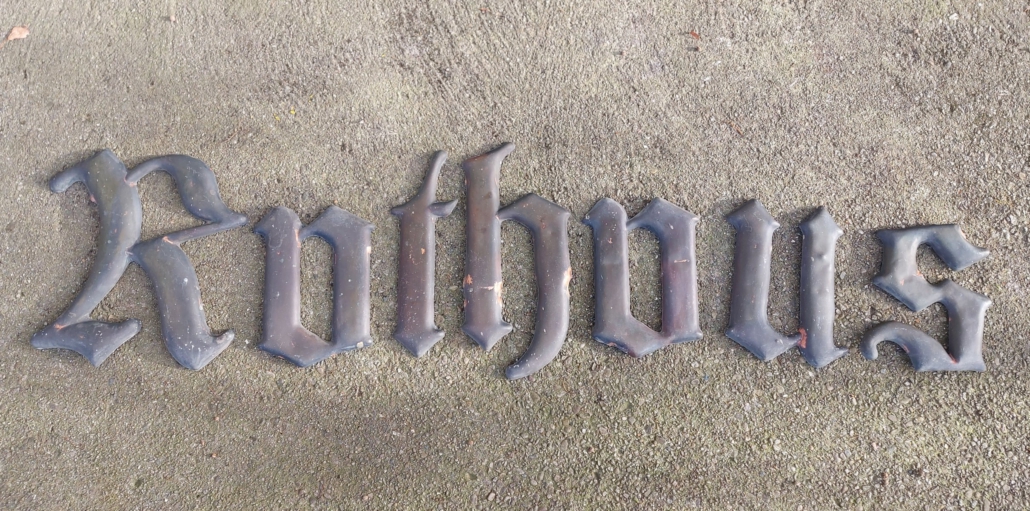 ‘Rathaus’ antike Kupfer Buchstaben In Frakturschrift